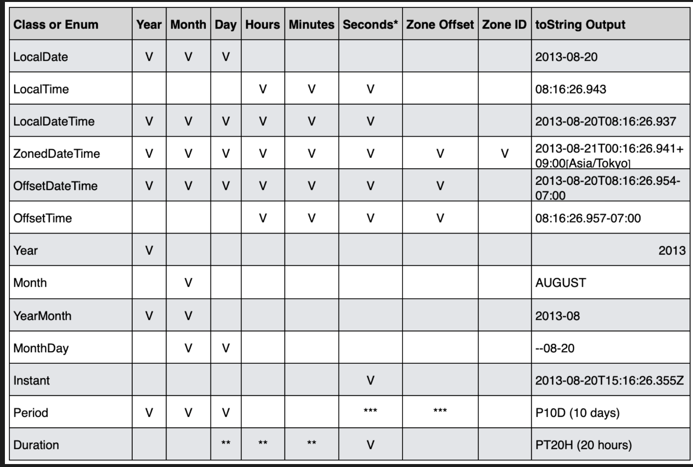 - ZonedDateTime : 시간대를 고려한 날짜와 시간
